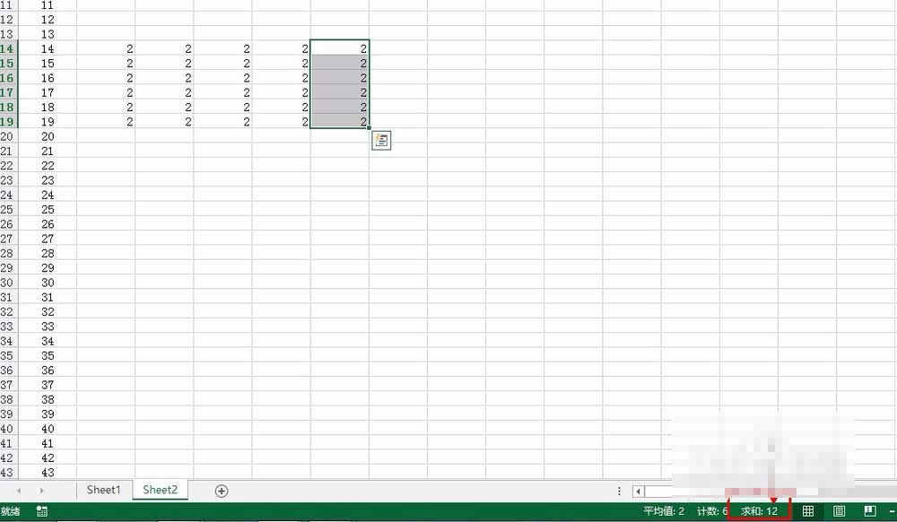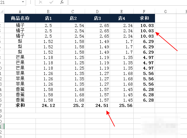 8、轻轻点击两下就可以快速对行与列进行求和。