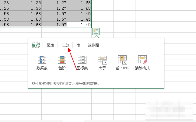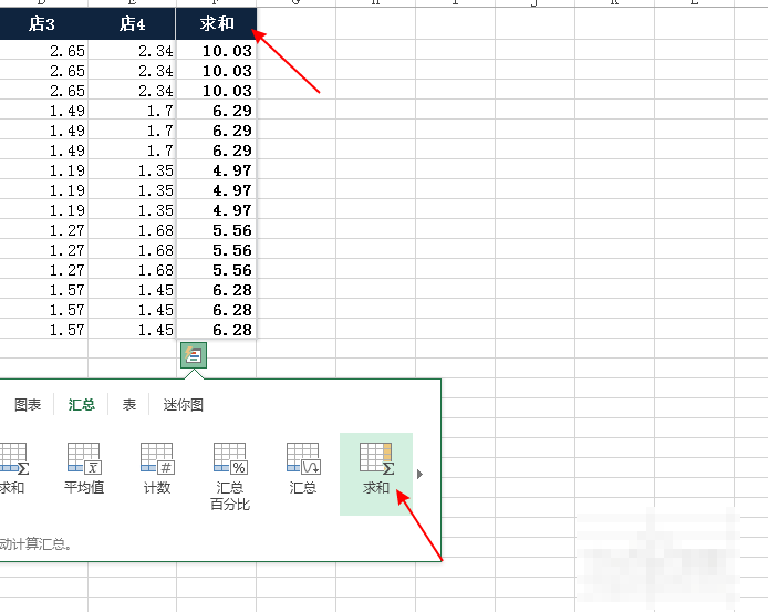 4、我们要实现数据的求和,所以这里点击【汇总】