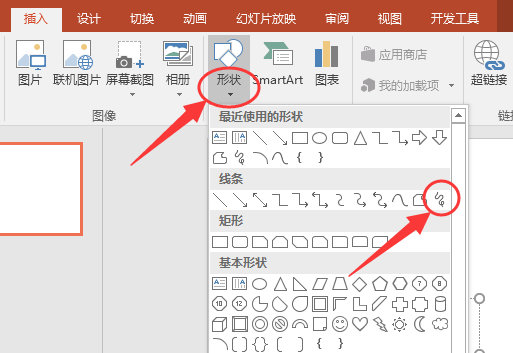 3、鼠标点击【插入】-【形状】-【线条】-【自由曲线】
