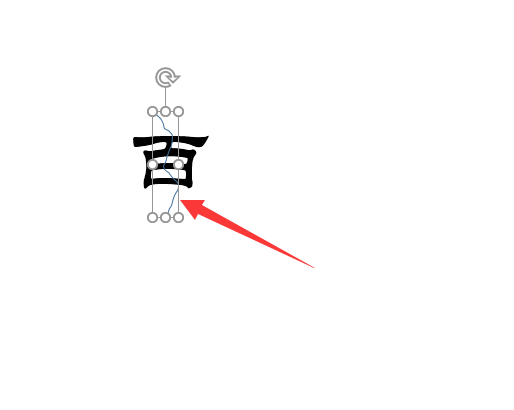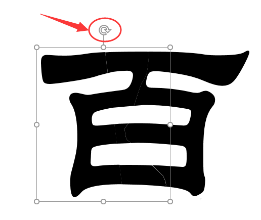 8、鼠标点击组合好的【百】字左半边,控制出现的旋转按钮进行文字旋转,最后稍微调整一下就可以了