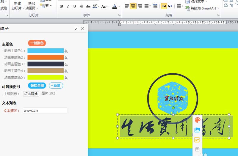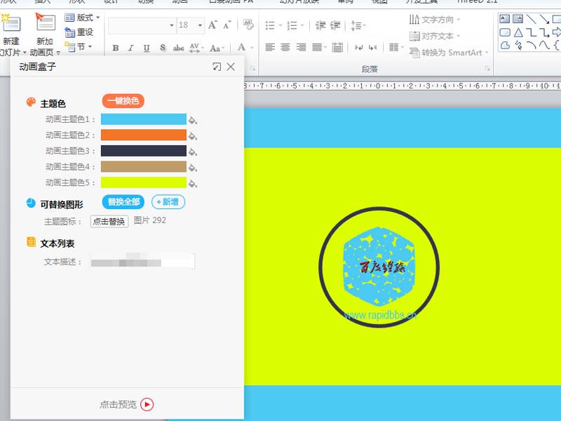 3、采用同样的方法依次修改主题动画颜色2-5,接着点击新增按钮,选择事先准备好的图片。