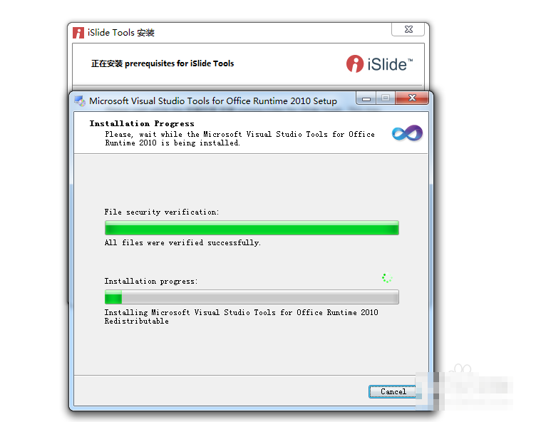 4、islide需要visual Studio tools for office4.0 runtime 和.netframework 4.5支持,点击下一步即可,会自动下载这两个工具。