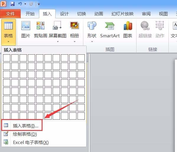 2、打开PPT之后在菜单里找到插入选项,点击该选项在其内找到表格选项,如图所示: