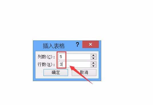 4、点击插入表格选项,在弹出的对话框内设置表格的行数和列数,如图所示: