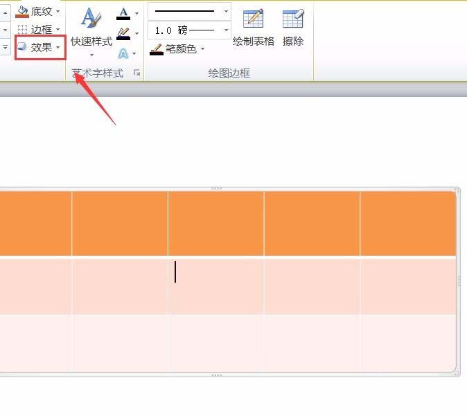 6、点击选择的表格样式我们就套用了该表格样式,然后再在上面找到效果选项,如图所示: