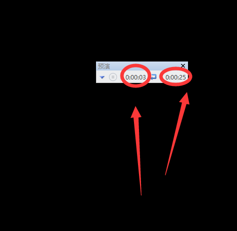 4、然后进入到这个界面,左上角的时间就是幻灯片播放所用的时间,一个是总时间,一个是单个页面的停留时间。