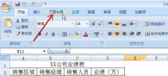 4、回到工作表,点击顶端的“页面布局”选项卡(图中红色箭头所指)