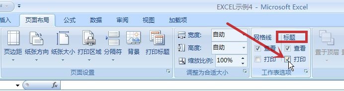 5、勾选“标题”(图中红框)内的“打印”前的方框(图中红色箭头所指)