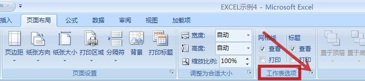 7、也可点击“工作表选项”(图中红框)旁的展开箭头(图中红色箭头所指)