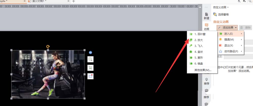 2、点击动画,给图片添加一个动画效果,或者进行自定义的调整
