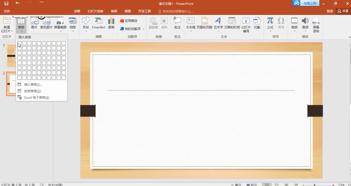 1、 点击菜单栏中的“插入”,点击其中的“表格”,调整行数列数之后插入表格。