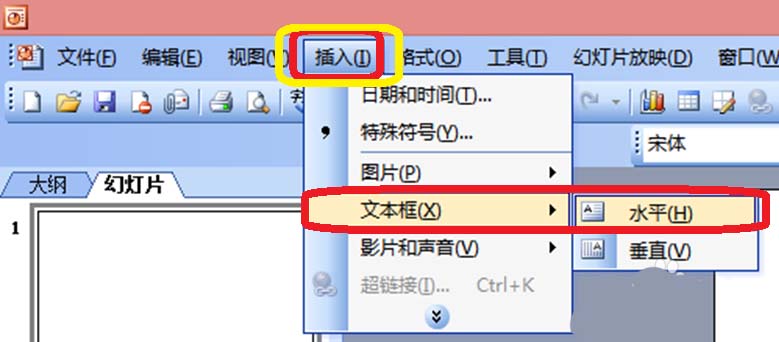1、打开一个ppt,找到插入文本框的工具。具体做法:点击上方工具栏中的插入,在下拉框里选择“文本框——水平”。