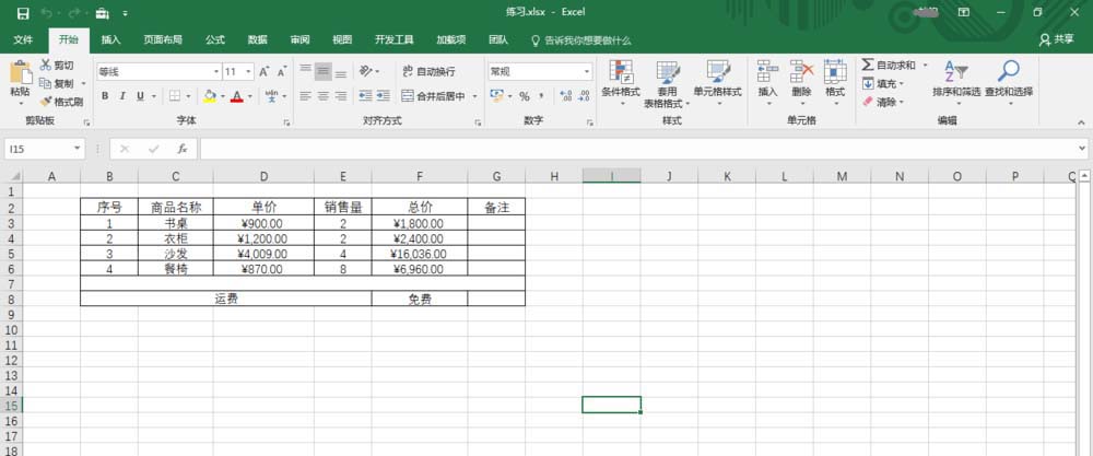 2、按照公司经营部数据创建工作簿文档,如图所示。本例计算商品发货时运费,要求将公式重新计算模式由自动重算改为手动重算。