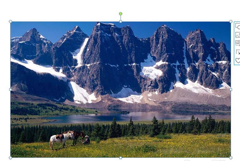 1、首先启动ppt2010,执行插入-图片命令,插入一张风景图片素材,调整大小。