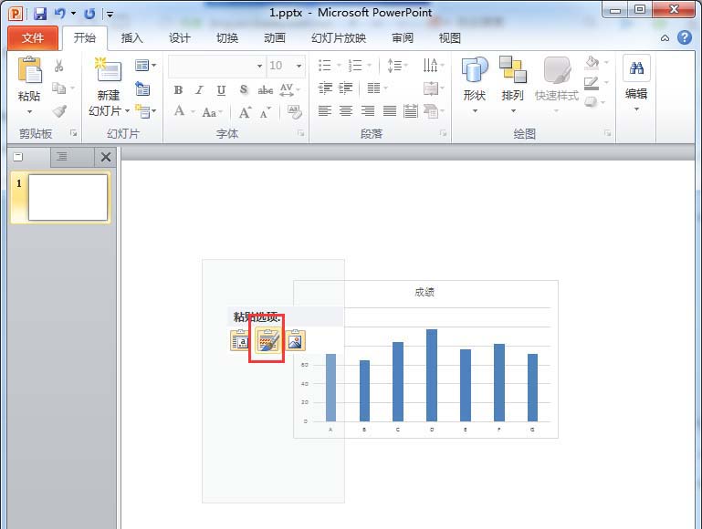3、这里我们可以选择第一种粘贴方式“使用目标主题”,也可以使用粘贴方式“保留源格式”。我们这里选择保留源格式,然后调整一下柱状图的大小。