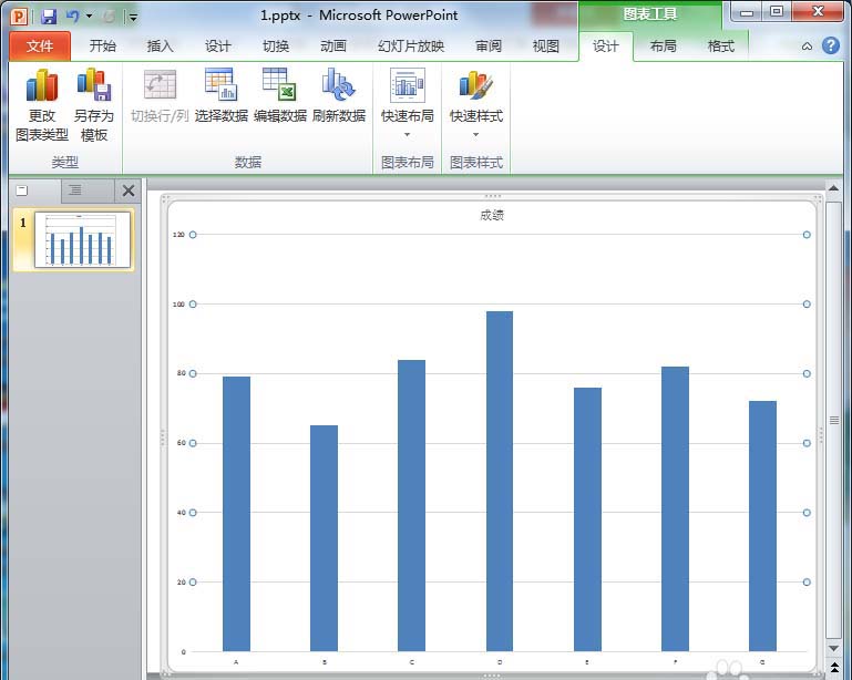 7、关闭Excel之后再次回到PPT中点击刷新数据,这时候柱状图就会改变了。