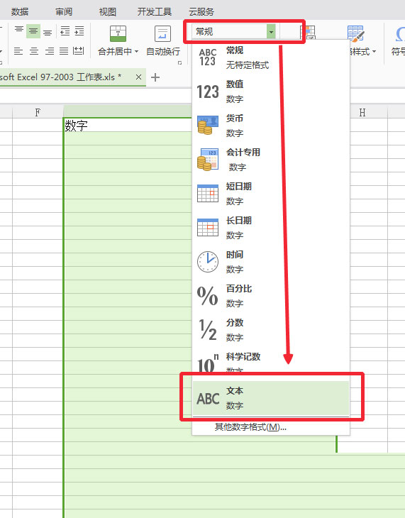 1、最简单的方法,打开excel,直接选中需要更改的单元格,右键或者从菜单当中把需要的单元格格式设成文本格式。