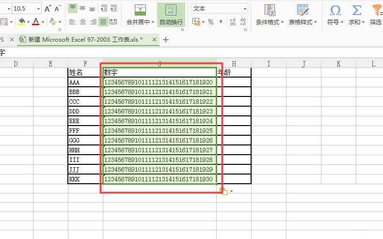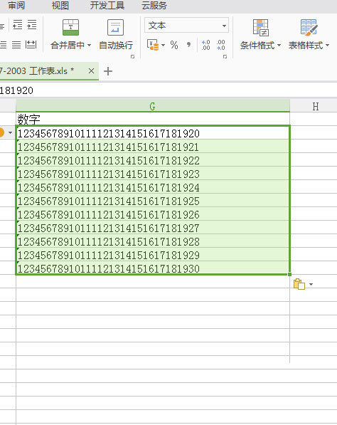 2、然后复制需要粘贴的数字,到已更改单元格格式的这一列当中。