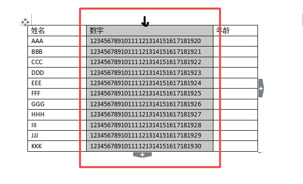 4、切换到word,在word当中选中需要复制的数字的那一列。当鼠标出现黑色下箭头的时候(图中黑色箭头标出来的地方,大概是鼠标靠近表格边框的时候),可以选中word当中表格的一列数据。如图。