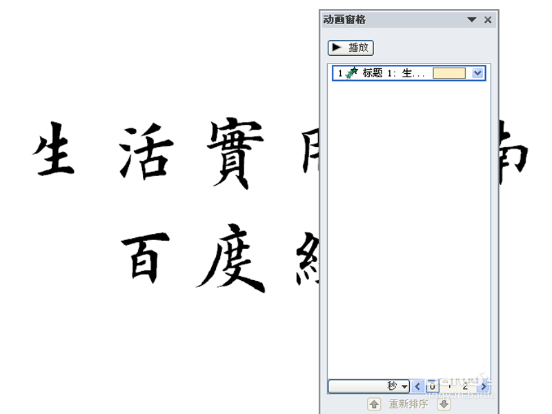 6、选择第一个动画设置开始为与上一动画同时,设置第二个动画为从上一动画之后,并设置持续时间为2,播放查看效果。