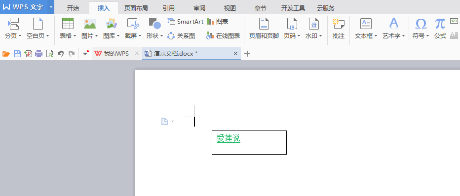 1、新建一个空白文档,创建文本框,输入爱莲说
