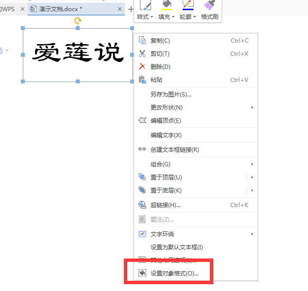 3、右击文本框,设置文本框效果