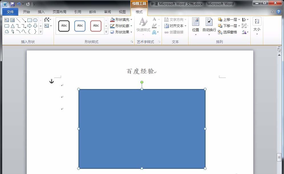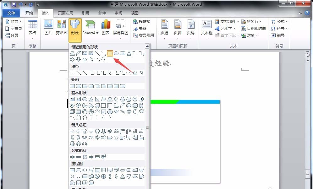 1、首先,打开word文档,点击“插入”菜单中“形状”-“矩形”,在文档中绘制出一个长方形。