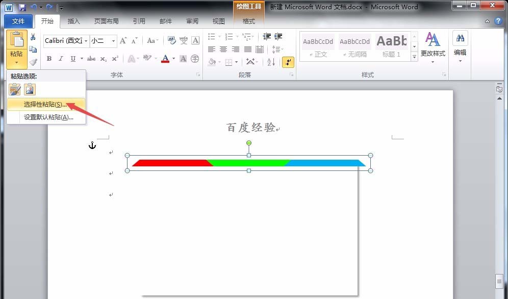 5、复制组合后的梯形,点击“开始”菜单下“选择性粘贴”,选择“JPEG”格式,将原来的组合梯形删除;同时利用“裁剪”工具将组合梯形裁剪的与大矩形两边对齐。