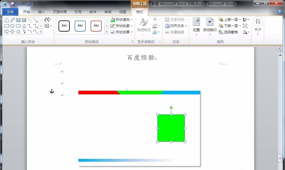 7、接着,用“矩形”再绘制一个正方形,填充为绿色,并设置其阴影效果。