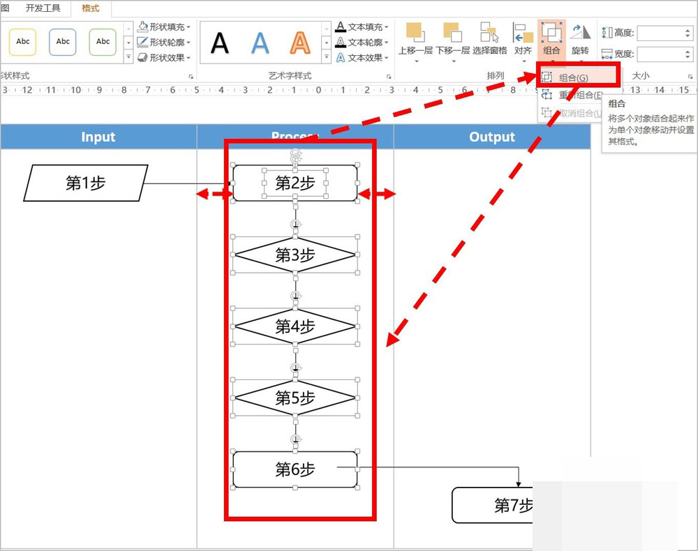 这时,我们可以再次选中要组合的全部对象后,在"格式"菜单中找到"组合"选项并进行组合。