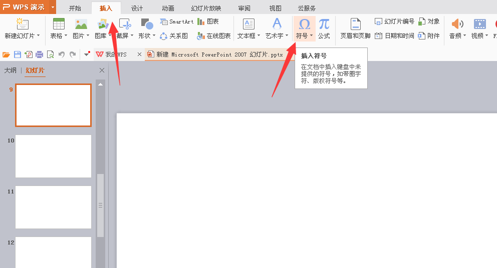2、点击上方菜单栏内的“插入”--“符号”选项,如图所示。