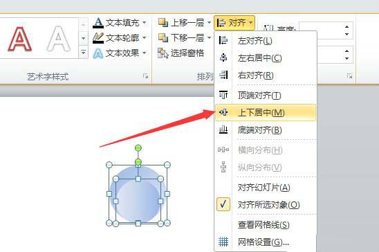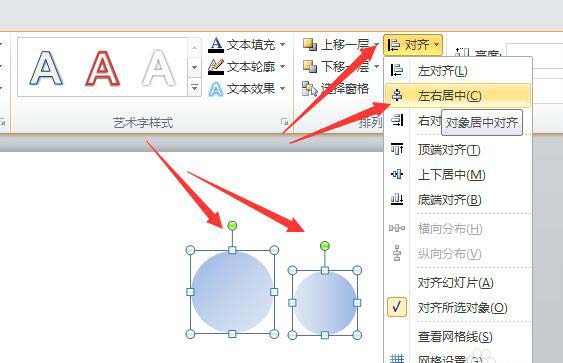 7、最后,将两个圆一起选中,再点击对齐功能,点击左右居中,再点击上下居中,一个漂亮的按钮就做出来了。