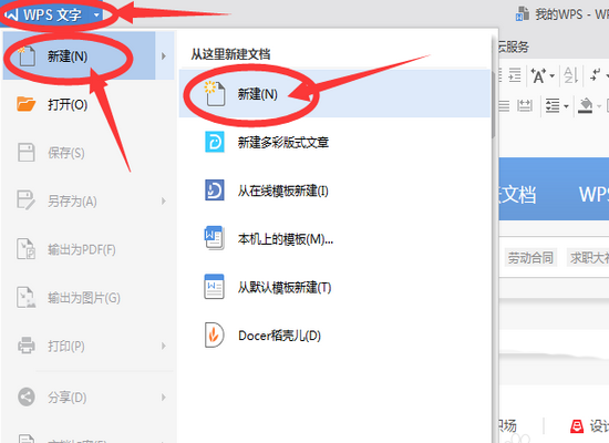 1、依然是新建一个文本文档,新建的方法前面介绍过两种,今天再给大家介绍一种。打开“WPS文档”,点击左上角位置的【WPS文字】标签,在下拉菜单中选择【新建】,在弹出的二级菜单中,选择【新建】,在跳出的选项框中,点击【新建空白文档】即可。