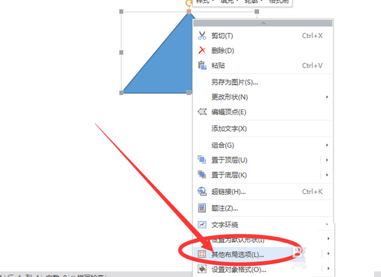4、设置【三角形】的大小,在上一步画好的三角形上点击鼠标右键,在弹出的快捷菜单中,选择【其他布局选择】。如下图。