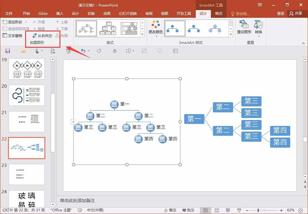 5、方法二:另一种方法,在SmartArt图形工具中,有个从左到右的功能,利用这里,也可以实现一个左右对称的效果,并且不会让SmartArt图形失去其有的功能。