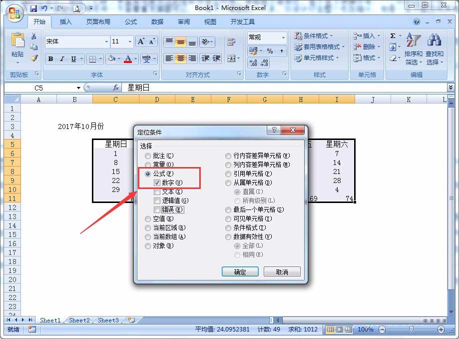 操作步骤,选中数据源——Ctrl+G——选择条件,比如这里,我们需要选中日期中的公式,按住组合键,选择公式,就可以快速选中公式的区域了。