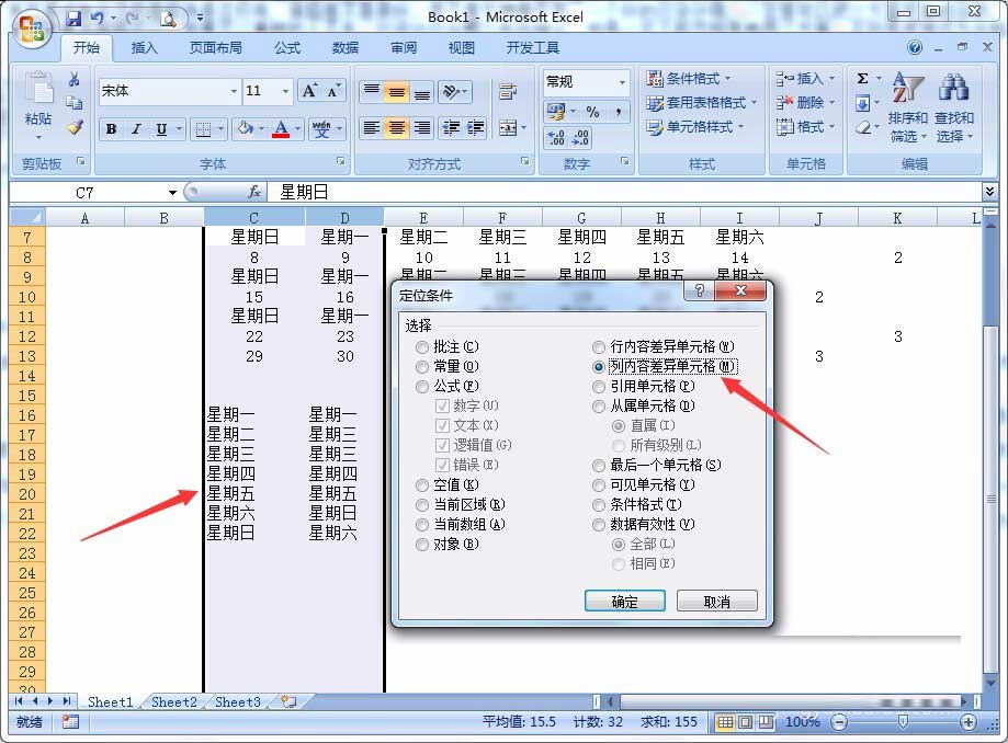 比如,这里做个演示,对比一下C跟D两列的差异,定位条件改为列内容差异单元格,然后选择颜色标记,就可以了。