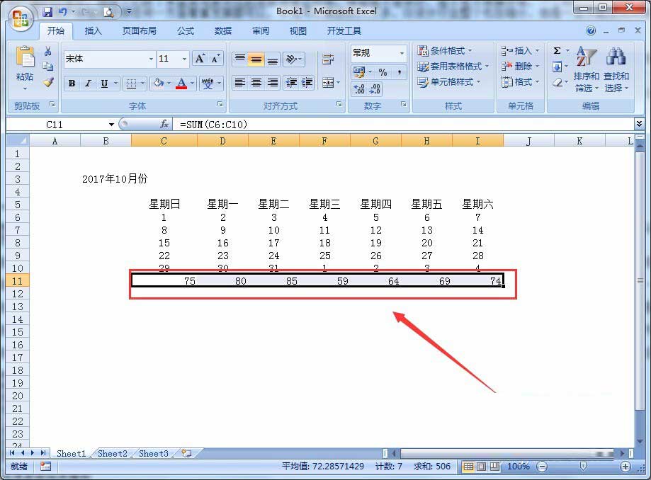 比如这里,做个比喻,把日期进行数字汇总,把定位条件改为空值,然后按住<Alt+=>可以实现快速求和,如下图所示。