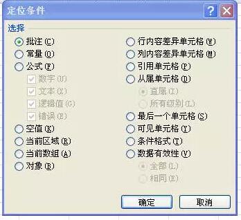 点击“定位条件”按钮,可以打开“定位条件”窗口,今天介绍的技巧全隐藏在这个小小的界面中。