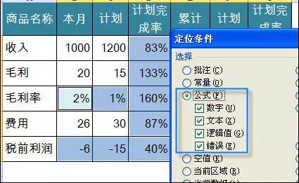 功能作用六:当数据报表出现公式以及数字同时存在的时候,要清除公式或者是数字,一个一个选择那太麻烦了,可以选择数据源——Ctrl+G——公式,数字,然后按Delete删除,就可以了。