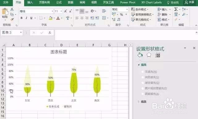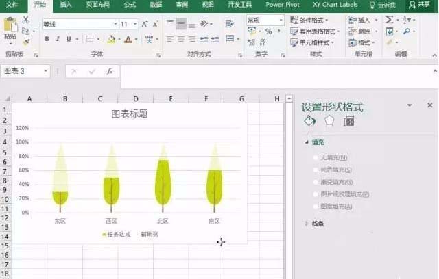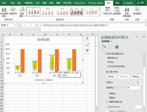 3、用图片替换柱子。在柱形图上点击代表任务达成列的柱子,右键单击,选择设置数据系列格式