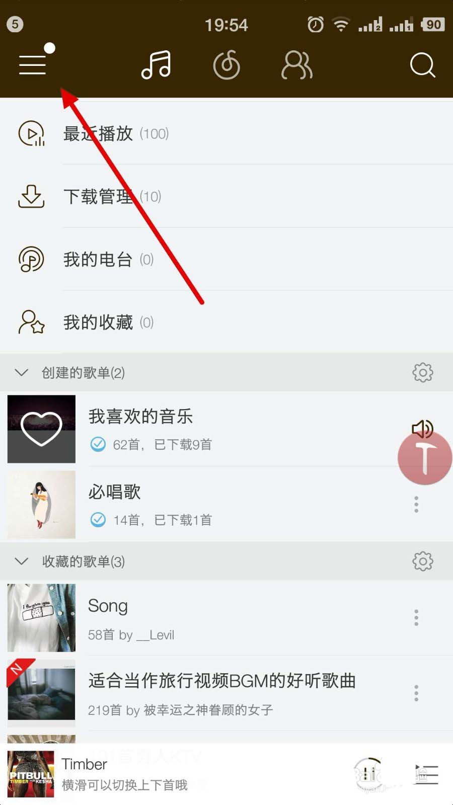 3、我们在打开的网易云音乐界面中,点击左上角的三个横杠图标。