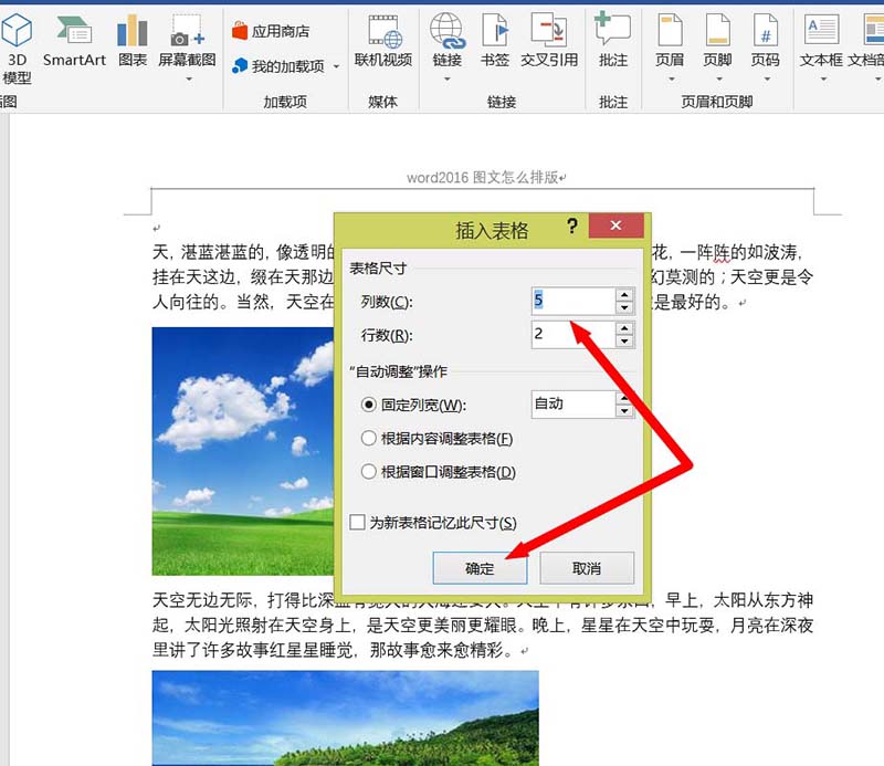 3、弹出对话框,输入所需要的【行】【列】,点击【确定】