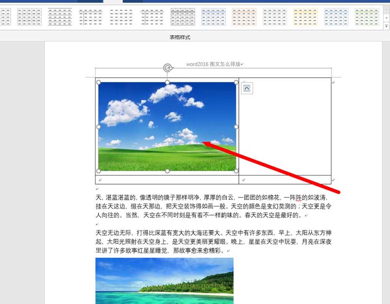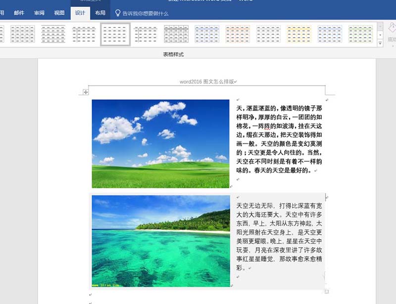 6、鼠标移到文档处,点击左键即可完成图文排版。这种排版是不是很美观呢。这里使用到的技巧就是表格功能。