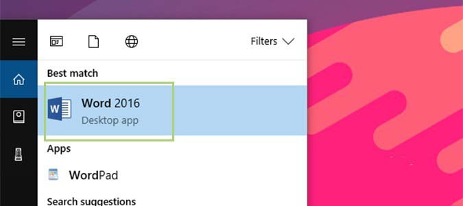 1、在Cortana搜索栏中,键入Word,然后按Enter打开Microsoft Word。