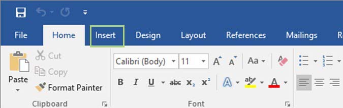 3、从功能区中,单击插入选项卡。