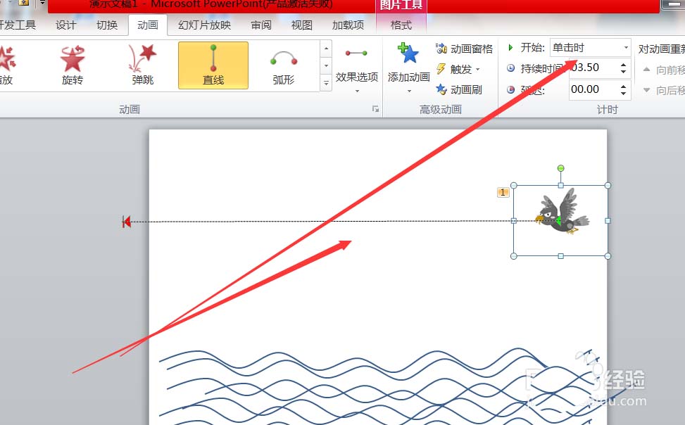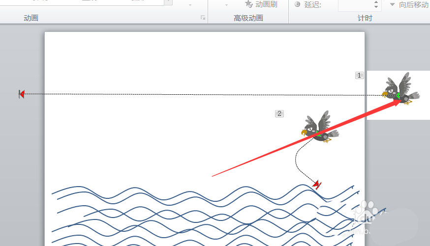 ppt中想要制作一个小鸟沿着海面飞行的动画,该怎么制作这个动画效果呢?请看下文详细介绍。