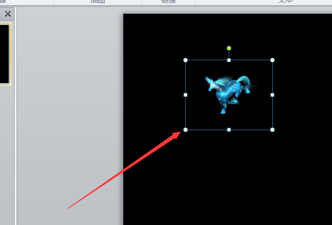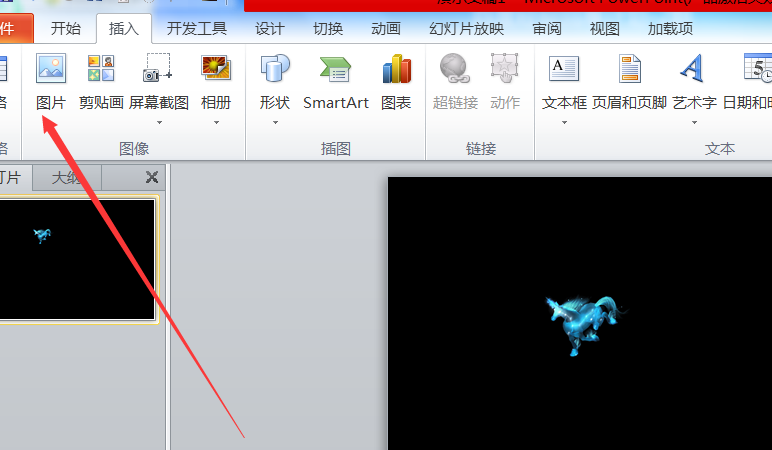 2、从上方的菜单栏中,选择“插入”“图片”,插入一张马的图片。接着,将这张图片用鼠标直接进行放大。