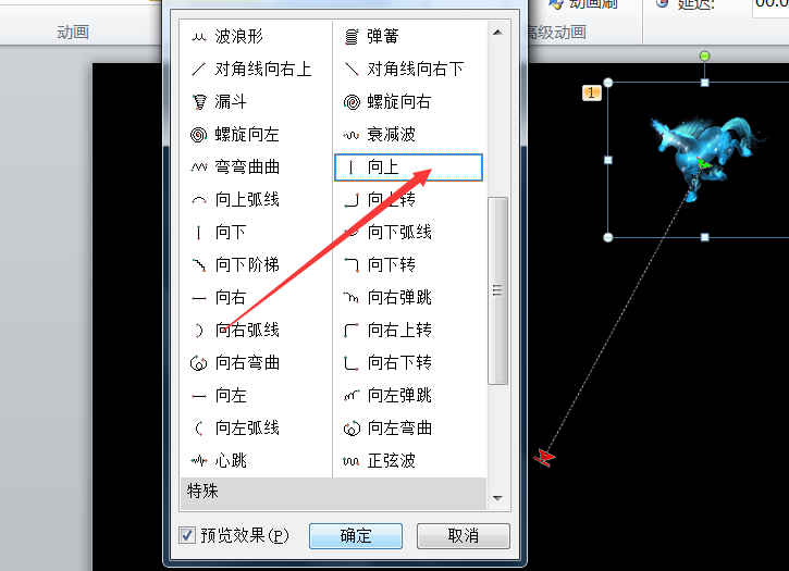 4、再次为这张图片添加路径动画为,向上动画路径。