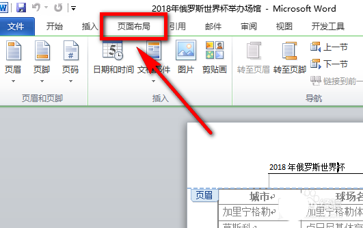 3、进入编辑状态后,点击菜单栏图示位置的【页面布局】选项。